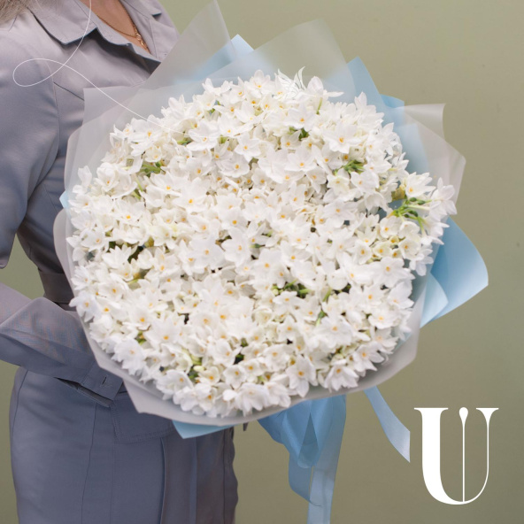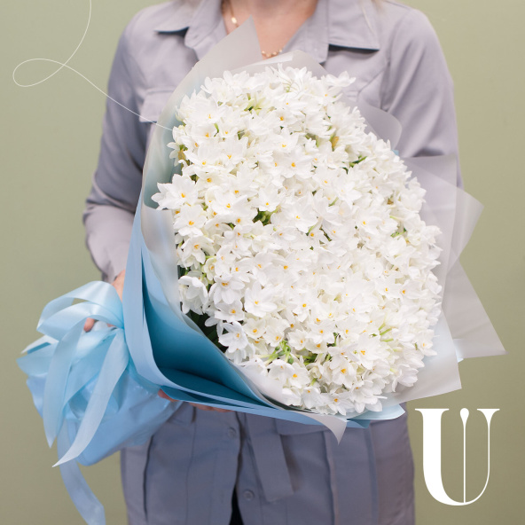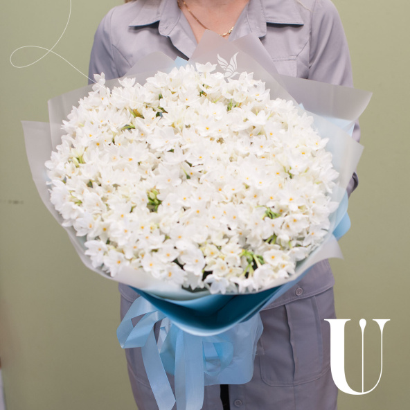 Большой букет из 51 пионовидной розы сорта Вайт Охара