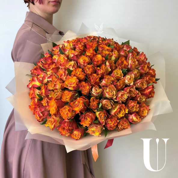 - Роза, Кения, красно-оранжевая, 40 см. - 105 шт