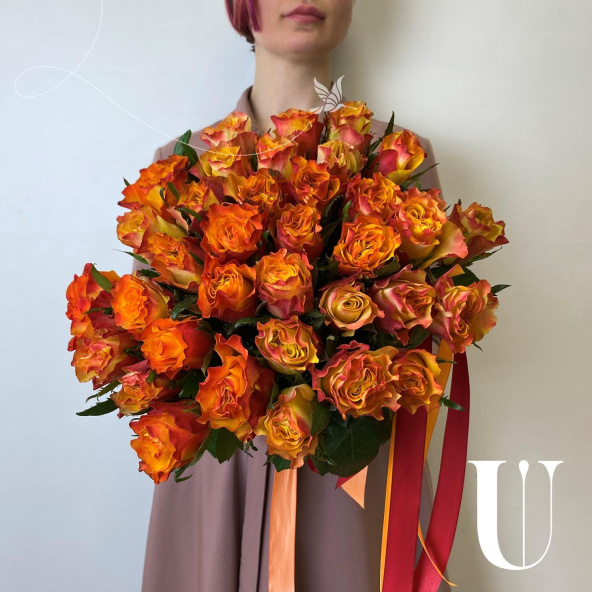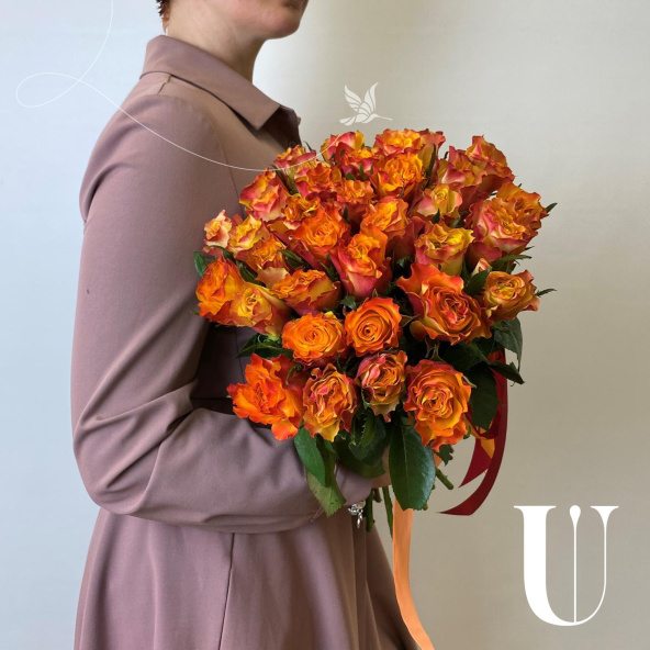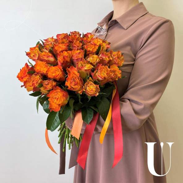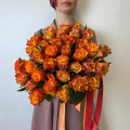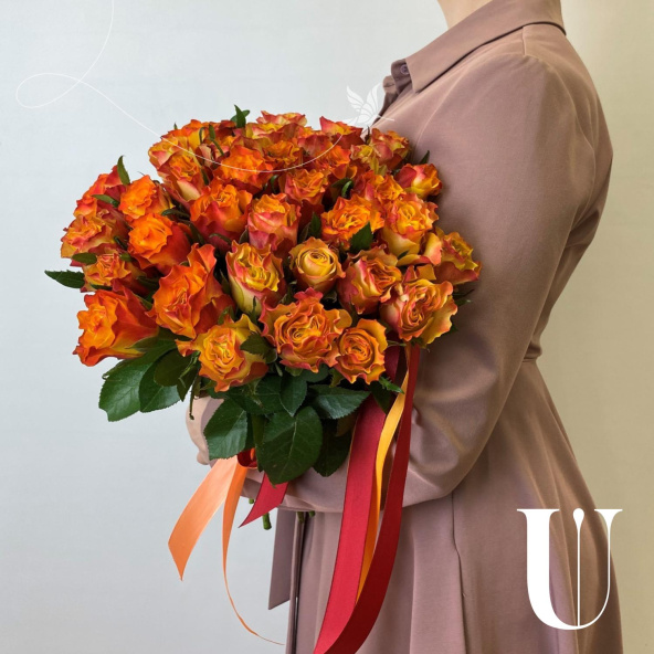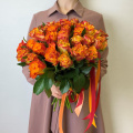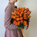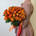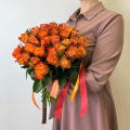 Монобукет из 19 роз сорта Миритим с атласной лентой