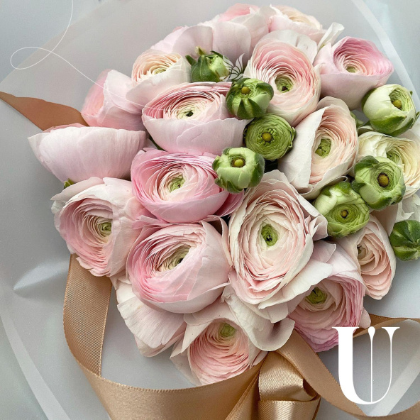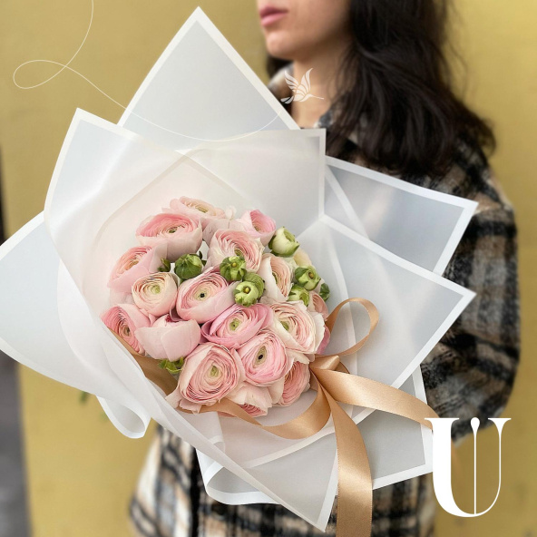9 нежных ранункулюсов сорта Ханой в стильной упаковке