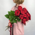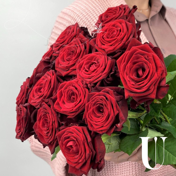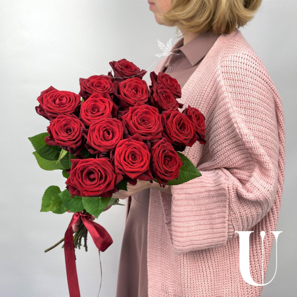 Монобукет из 15 роз сорта Валентина 60 см в упаковке