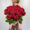 Монобукет из 35 розовых роз сорта Аква