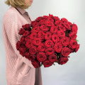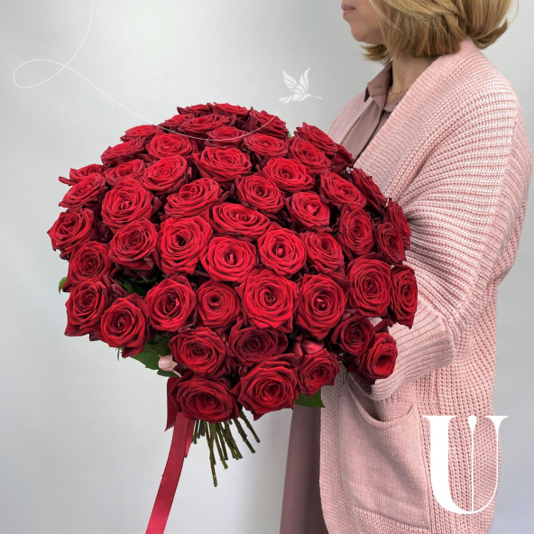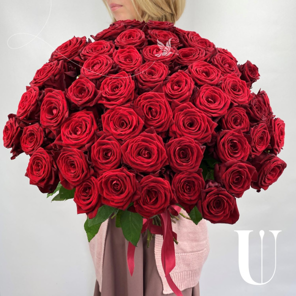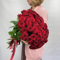 Монобукет из 49 роз Ред Наоми в белой упаковке