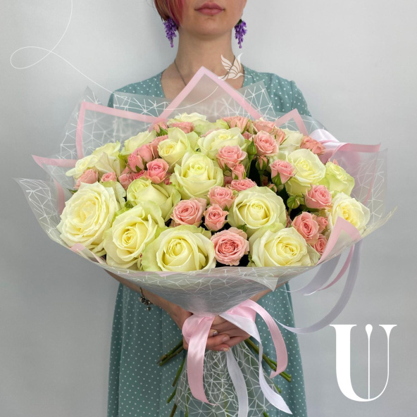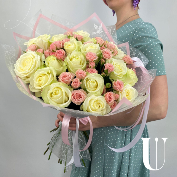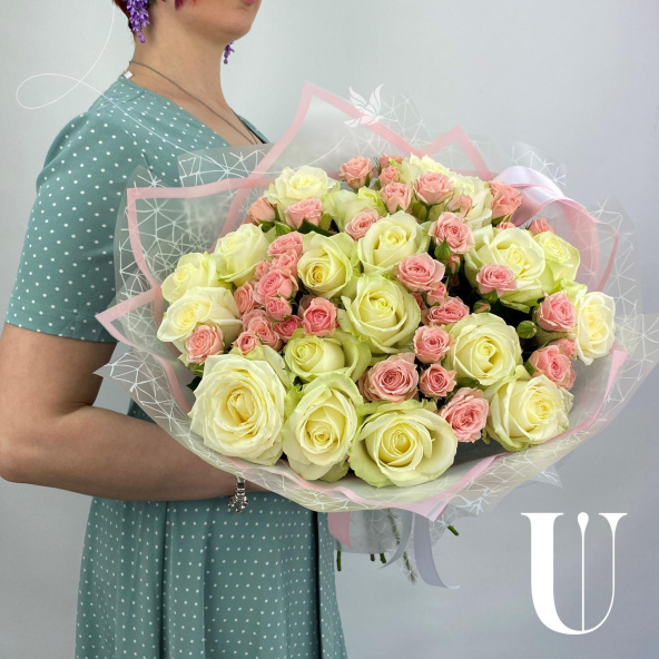 - Роза Лидия, кустовая, розовая, 60 см. - 9 шт