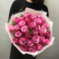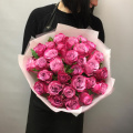 Монобукет из 15 вывернутых роз сорта Нина в матовой упаковке