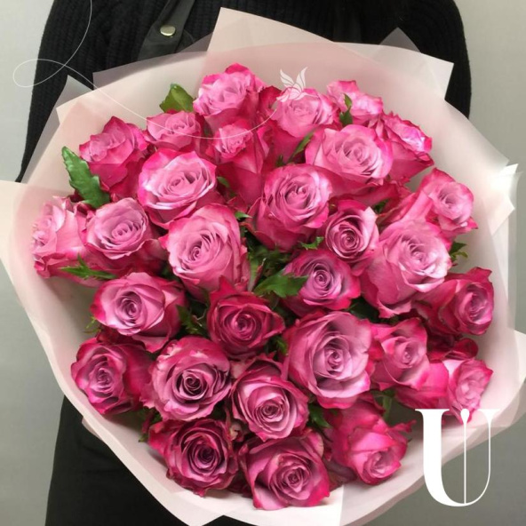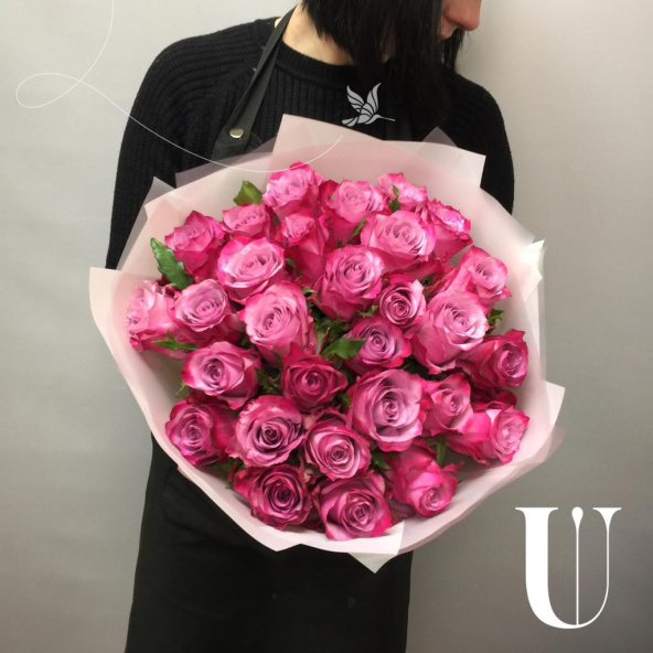 Монобукет из 11 роз Пинк Мондиаль в упаковке