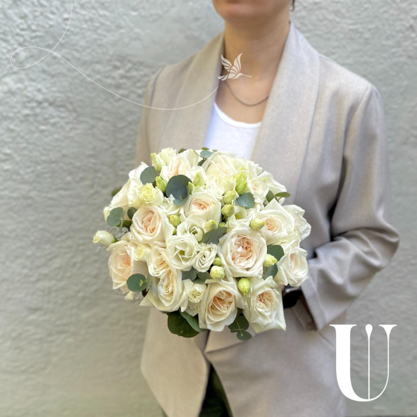 - Роза Вайт Охара, Эквадор, бело-розовая, пионовидная 50 см. - 17 шт