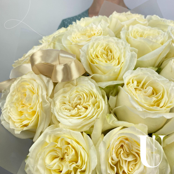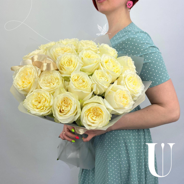- Роза Кэндллайт Эквадор, бело-золотистая 60 см - 19 шт