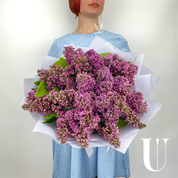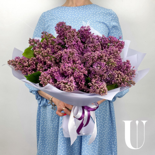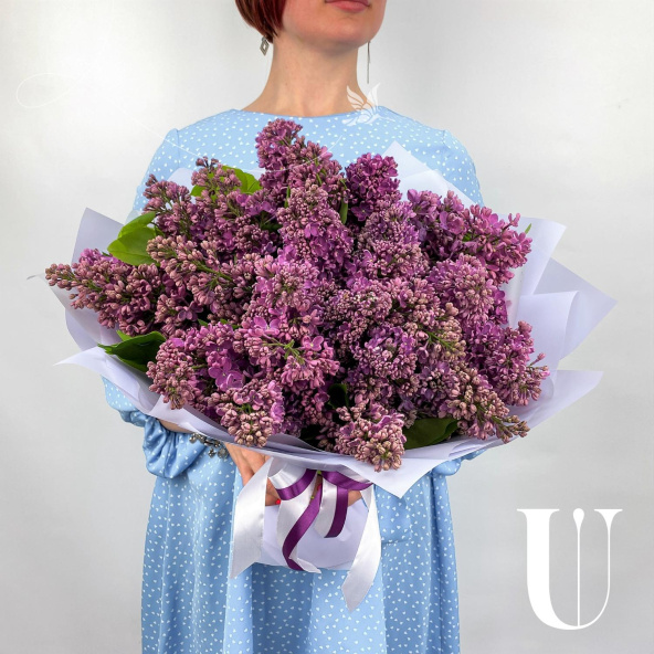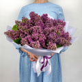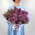 Монобукет из 9 фиолетовых хризантем в упаковке