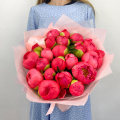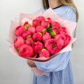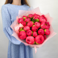 Букет из розовых и белых пионов в упаковке