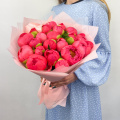 Букет из малиновых кустовых пионовидных роз 50 см