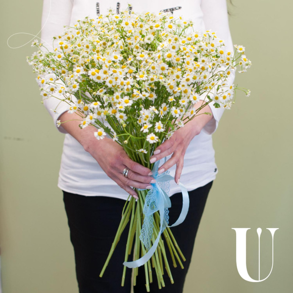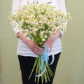 Букет состоит из 25 ромашек, которые являются символом любви и нежности. Благодаря этому, букет "Ромашкино" будет выглядеть свежо и актуально.