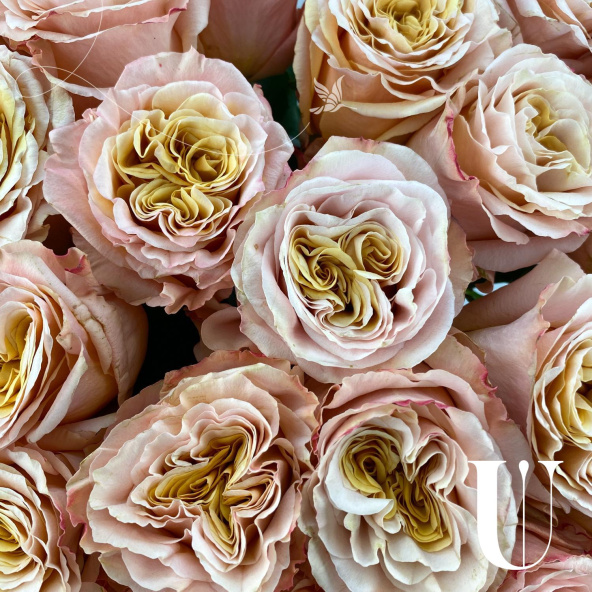 Сказочная роза сорта Шиммер родом из стран Эквадора, Колумбии, Нидерландов. Роза с крупным бутоном и волшебным раскрытием! Персиковые лепестки переливаются от пудрового по краям до песочно-желтого в центре!