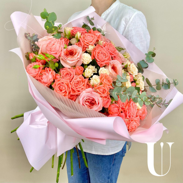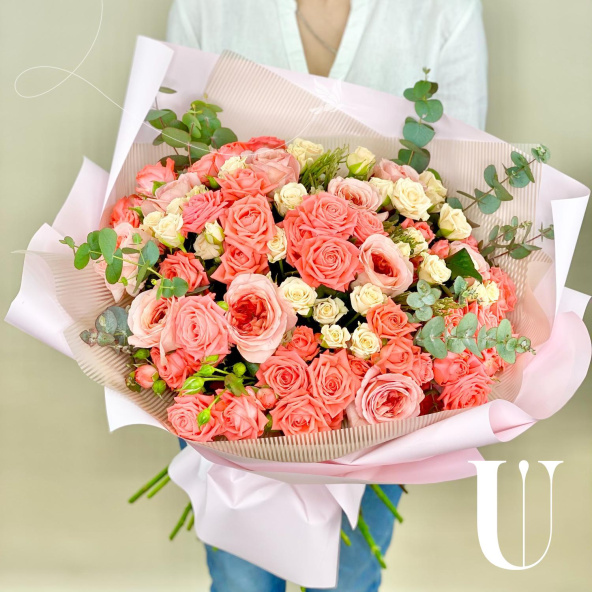 - Роза кустовая, Барбадос, Россия, коралловая, 50 см. - 20 шт