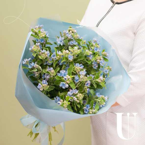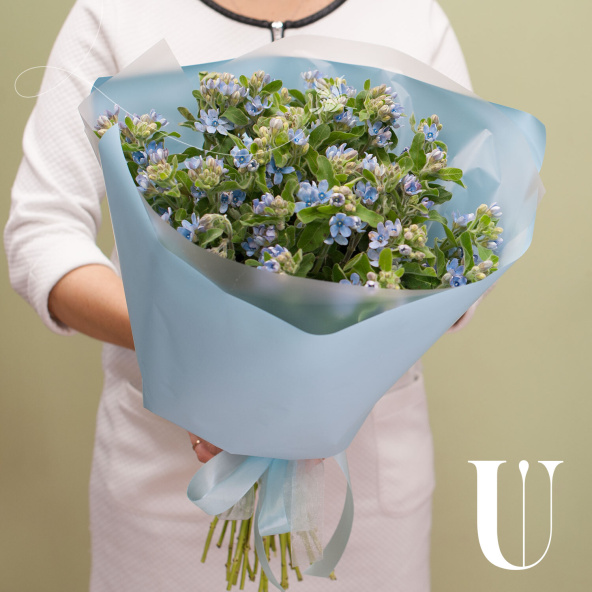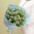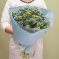 Монобукет из розовых кустовых пионовидных роз в упаковке