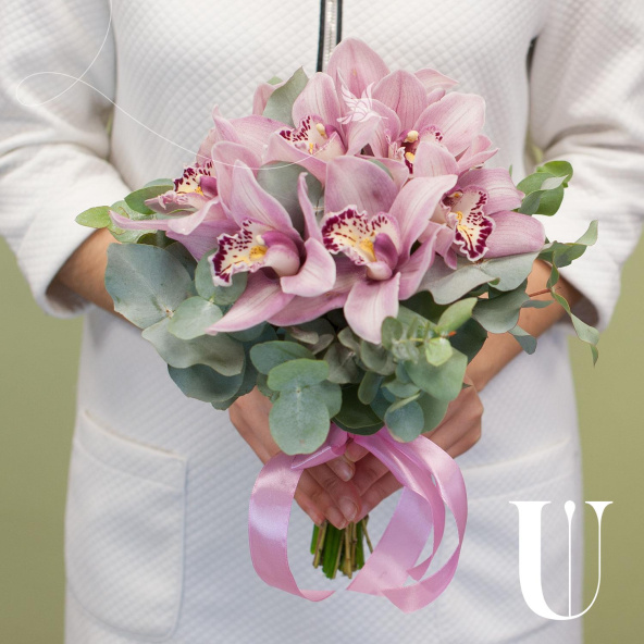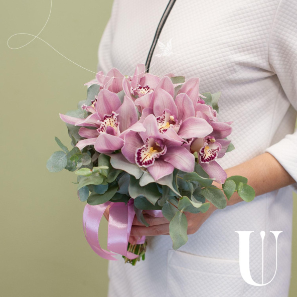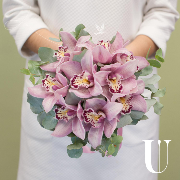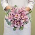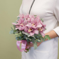 Микс из фиолетовых и кремовых диантусов в дизайнерской упаковке