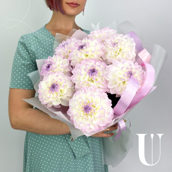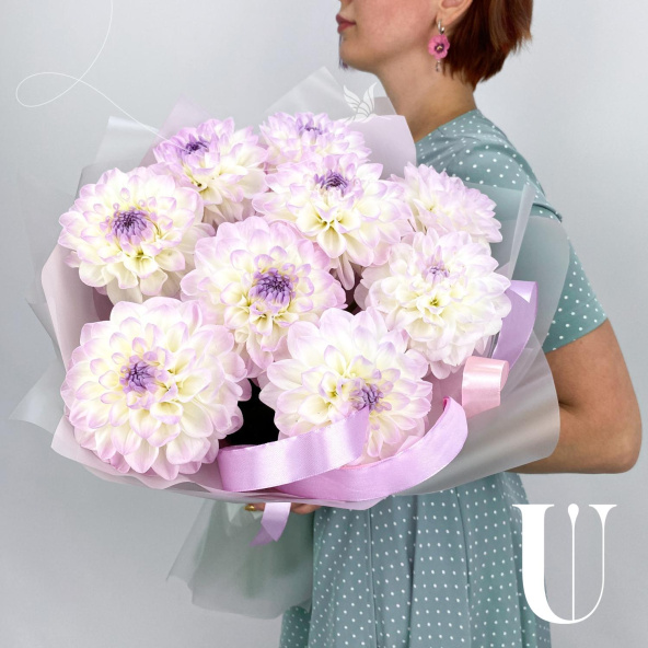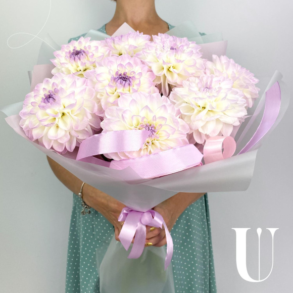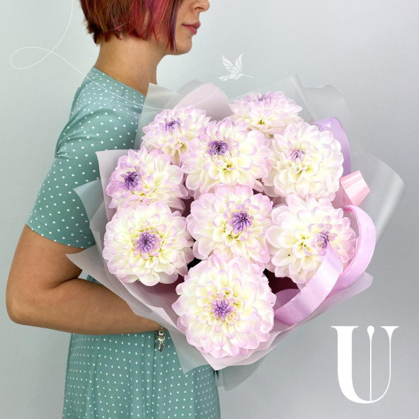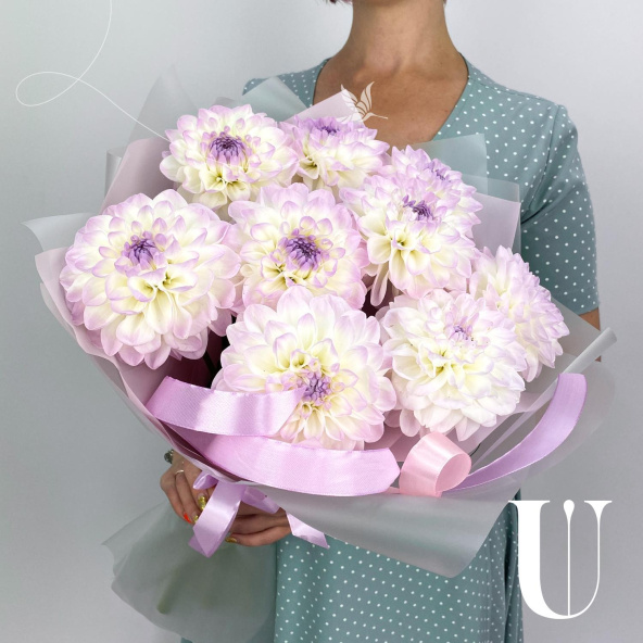 - Георгина Эвелин, бело-сиреневая - 9 шт