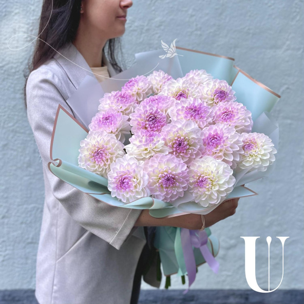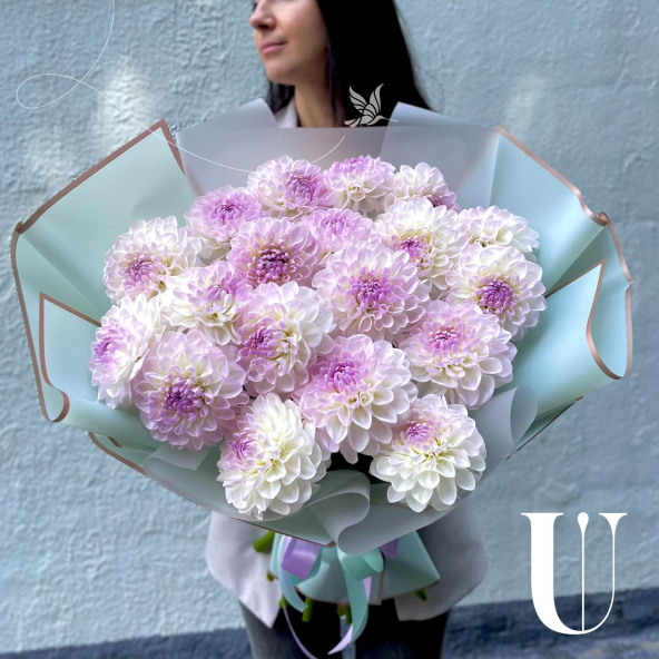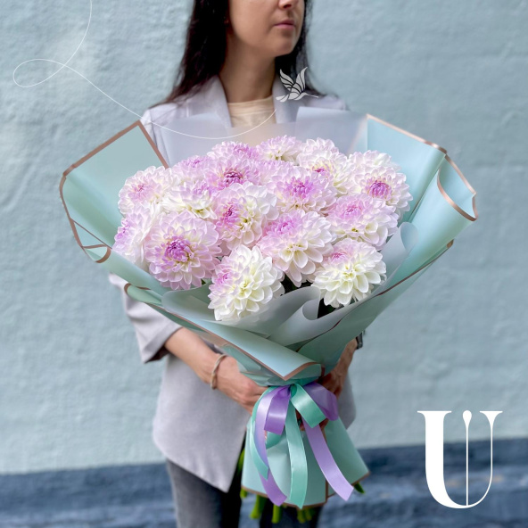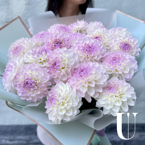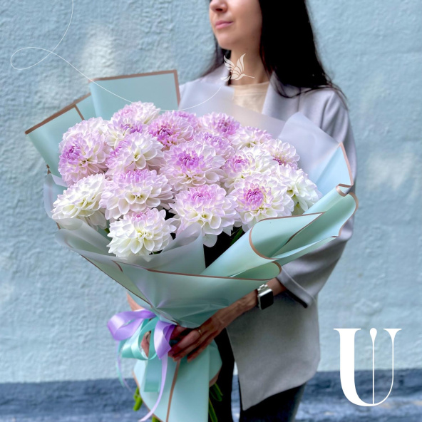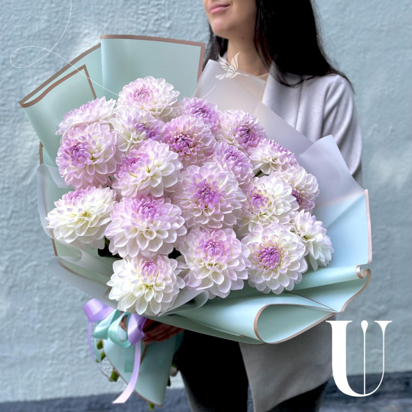 - Георгина Эвелин, бело-сиреневая - 19 шт