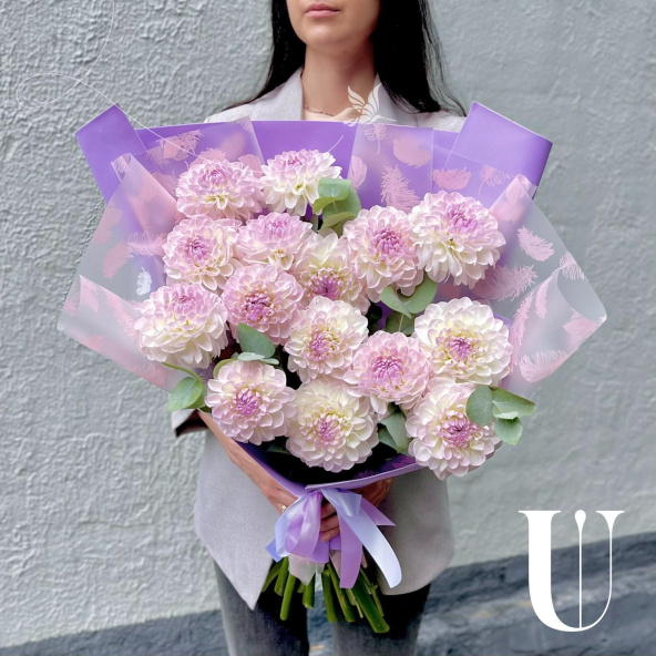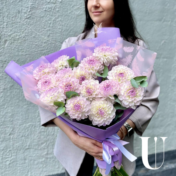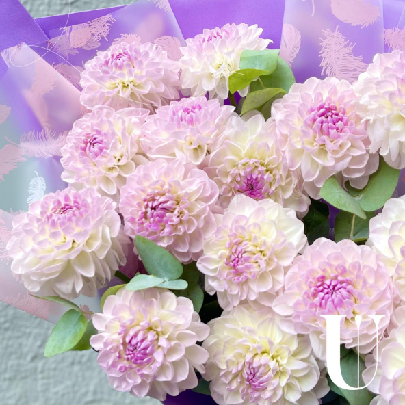 - Георгина Эвелин, бело-сиреневая - 15 шт