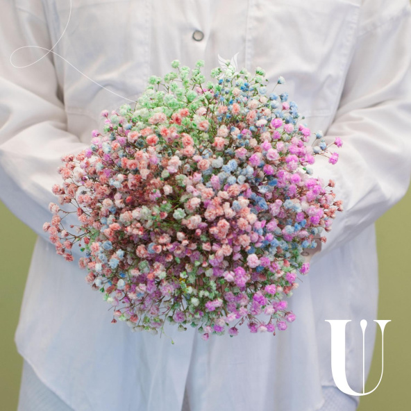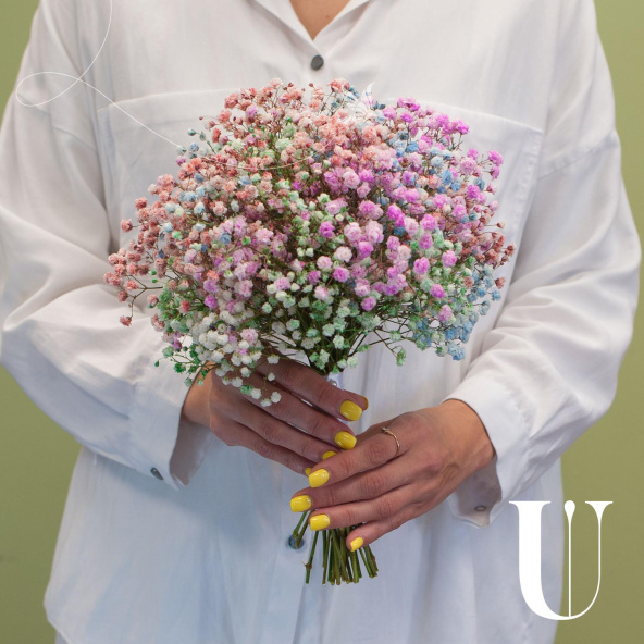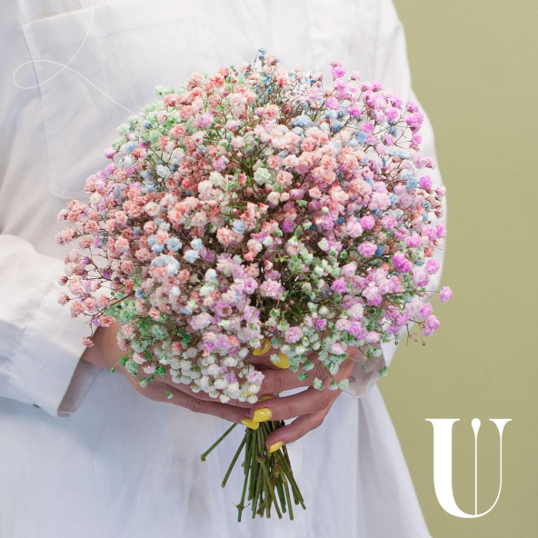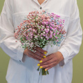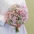 Монобукет из микса роз и белой гипсофилы в крафтовой упаковке