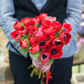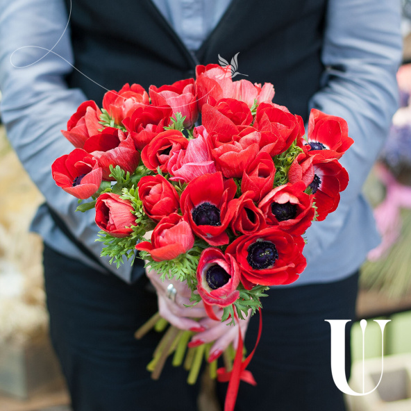 Букет из анемонов "Красные анемоны" - это изысканный и стильный подарок, который станет незабываемым сюрпризом для любого случая.
