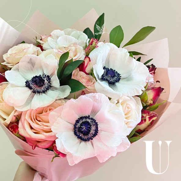 Монобукет из 11 роз Вайт Охара в розовой упаковке