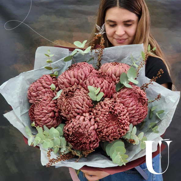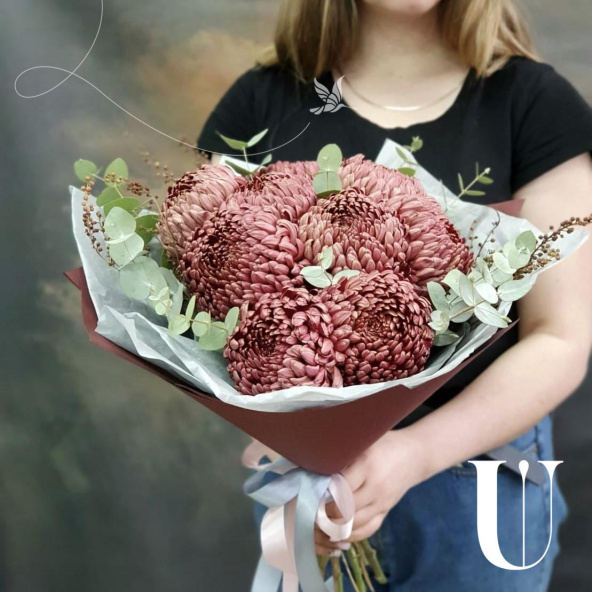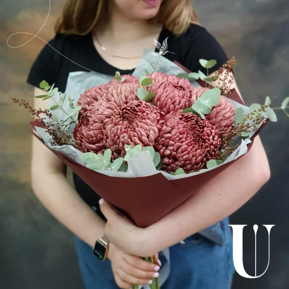 - Хризантема одноголовая, бордо - 9 шт