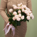 Монобукет из 25 роз сорта Космик в матовой пленке
