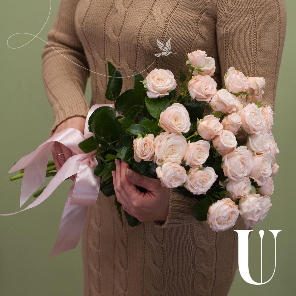 Нежные кустовые пионовидные розы в дизайнерской упаковке