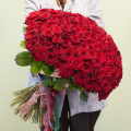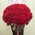 Большой монобукет из пионов сорта Ред Шарм, Сара Бернар и других сортов