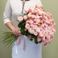 Монобукет из 51 белой и розовой розы в упаковке