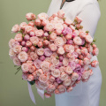 Большой букет из кустовых пионовидных роз Мисти Бабблз в упаковке