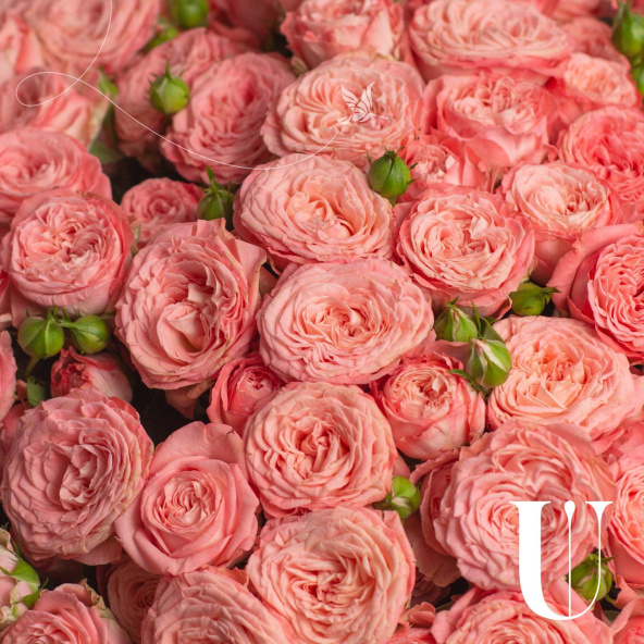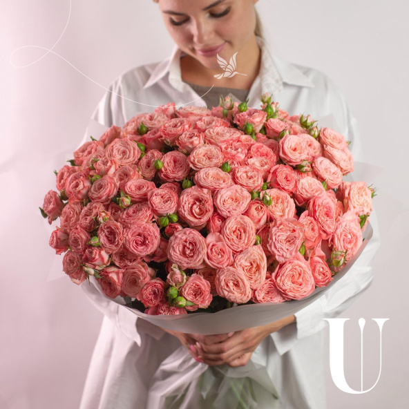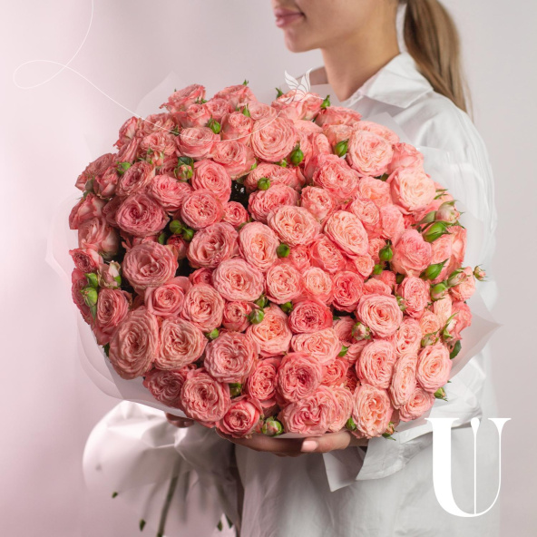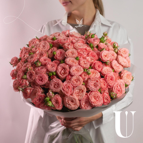 Монобукет из кустовых пионовидных роз Джульетта в упаковке