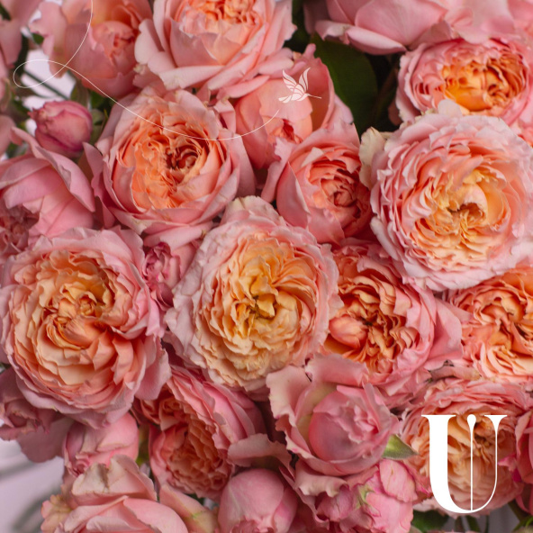 Монобукет из роз сорта Пич Аваланж в крафтовой упаковке