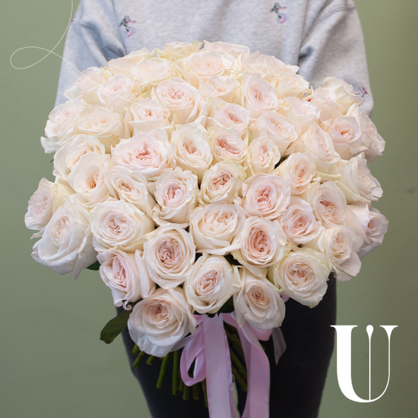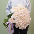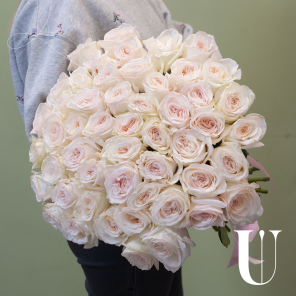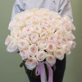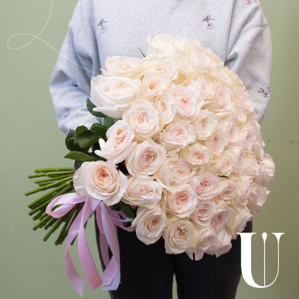 Огромный монобукет из 101 кремовой розы сорта Пич Аваланж 60 см