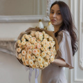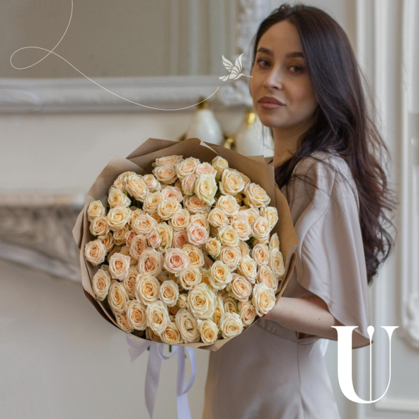 Монобукет из 51 кремовой розы 60 см в упаковке