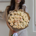 Монобукет из 51 розы сорта Шангри Ла в крафтовой упаковке