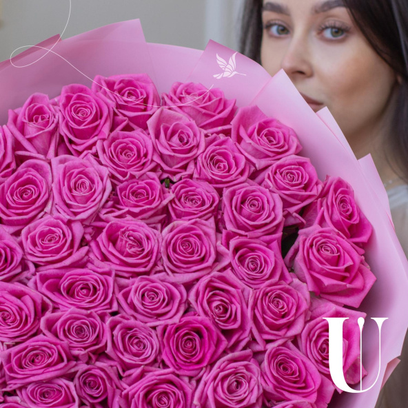 Исключительный монобукет из 51 розы сорта Аква
