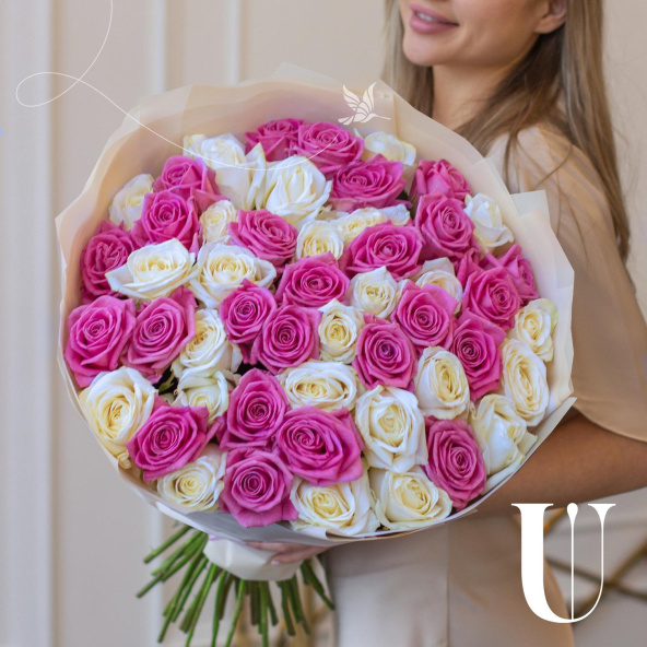Монобукет из 41 бело-розовой розы сорта Джумилия 60 см