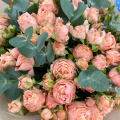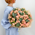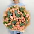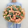 Монобукет из розовых кустовых пионовидных роз в упаковке