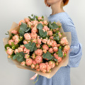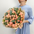 Монобукет из кустовых роз микс в крафтовой упаковке