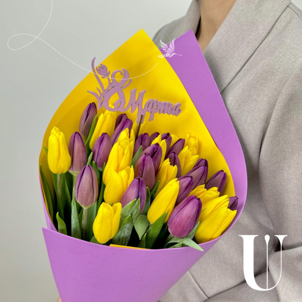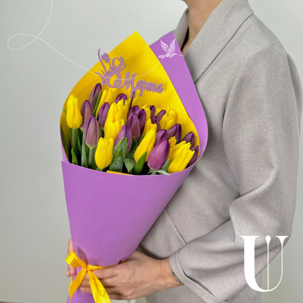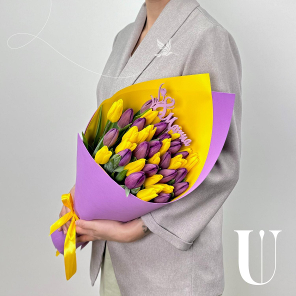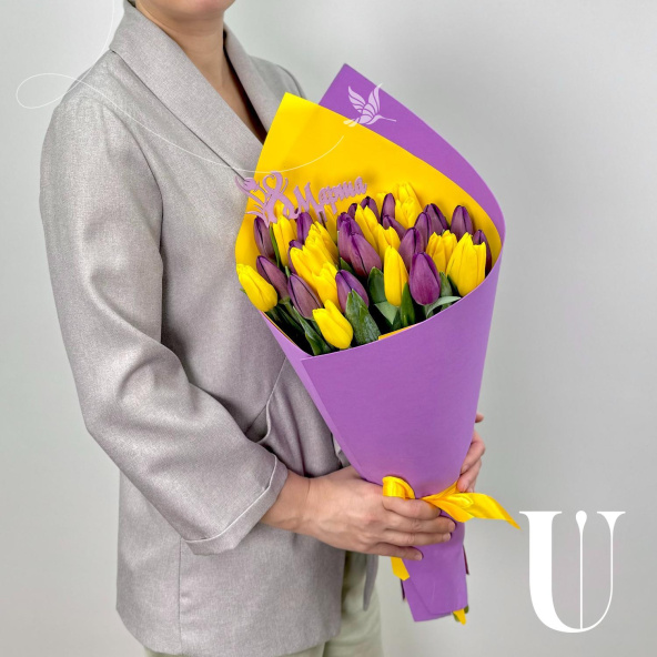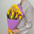 Монобукет из 49 тюльпанов микс в крафтовой упаковке