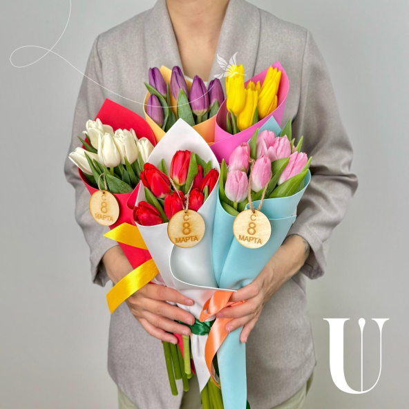 - 5 букетиков из 7 тюльпанов (разного цвета)