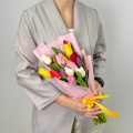 Монобукет из 25 фиолетовых тюльпанов в упаковке