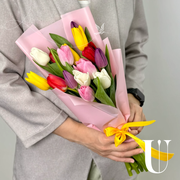 Букет из 15 белых тюльпанов в дизайнерской упаковке