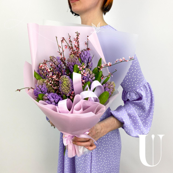 Монобукет из 9 фиолетовых маттиол для ценителей нестандартной эстетики