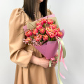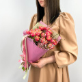 Монобукет из 9 роз сорта Пинк Охара в дизайнерской упаковке