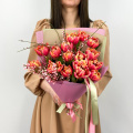 Монобукет из красных кустовых роз сорта Мирабель 60 см в упаковке