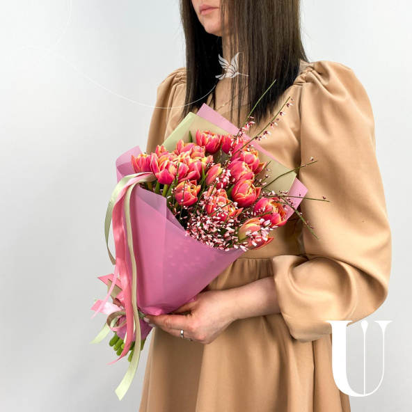 Монобукет из 5 розовых лилий в дизайнерской упаковке