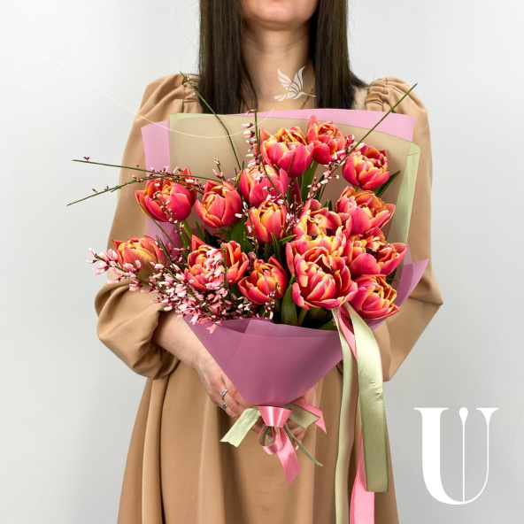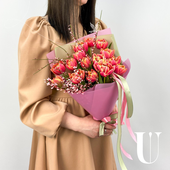 Монобукет из 19 роз сорта Гран При 70 см в крафтовой упаковке